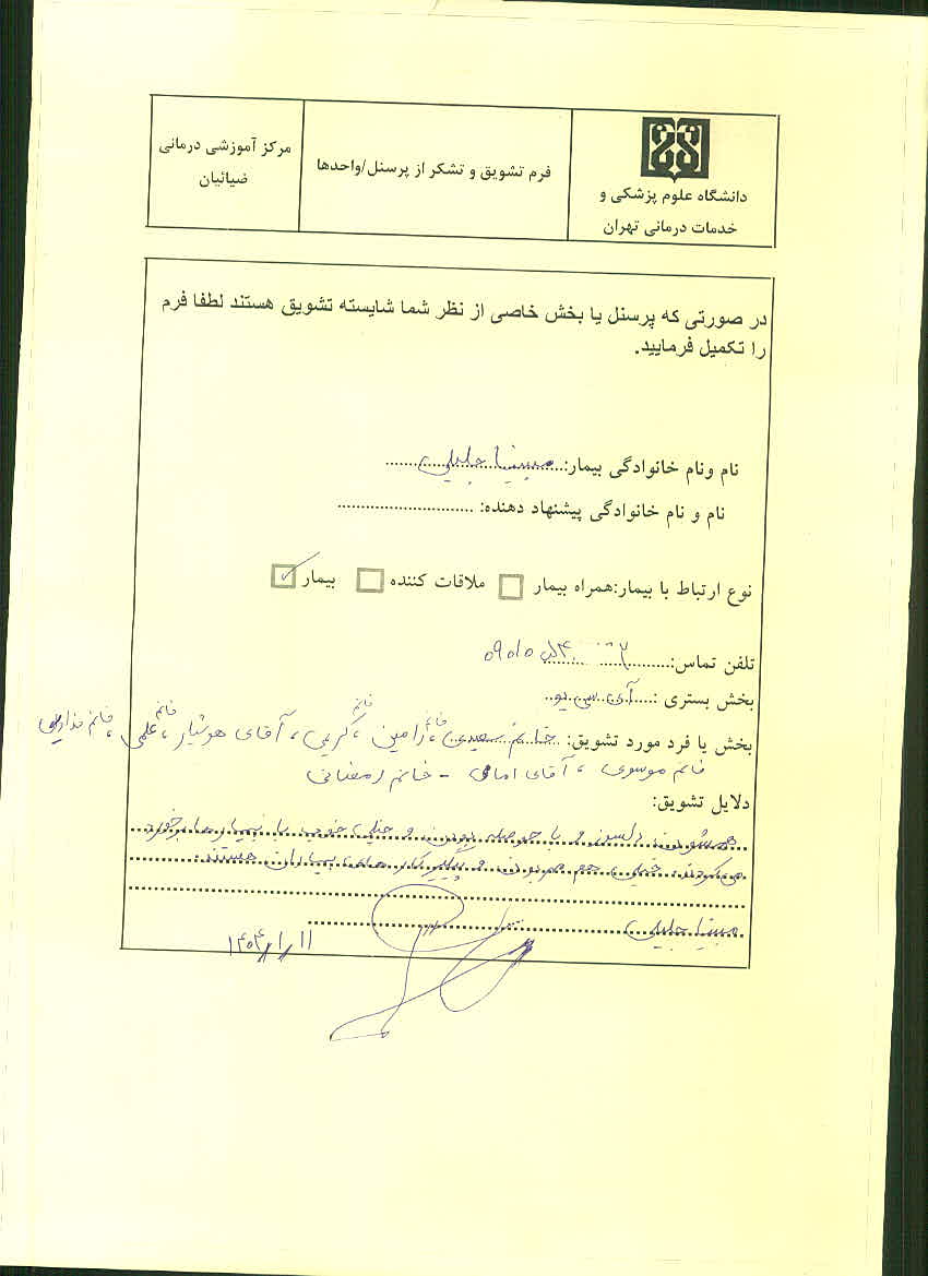 قدردانی بیماران از خدمات بیمارستان ضیائیان