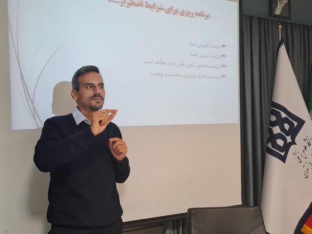 ایشان در ادامه به تبیین مفاهیم اساسی تخلیه پرداخت و سپس مراحل چهارگانه مدیریت بحران شامل آمادگی، پیشگیری، پاسخ و بازیابی را با جزئیات توضیح داد؛ این برنامه آموزشی با هدف افزایش آمادگی کارکنان در مواجهه با شرایط بحرانی، ارتقای هماهنگی میان واحدهای مختلف و بهبود عملکرد در اجرای کد ۱۰۰ طراحی و انجام شد.